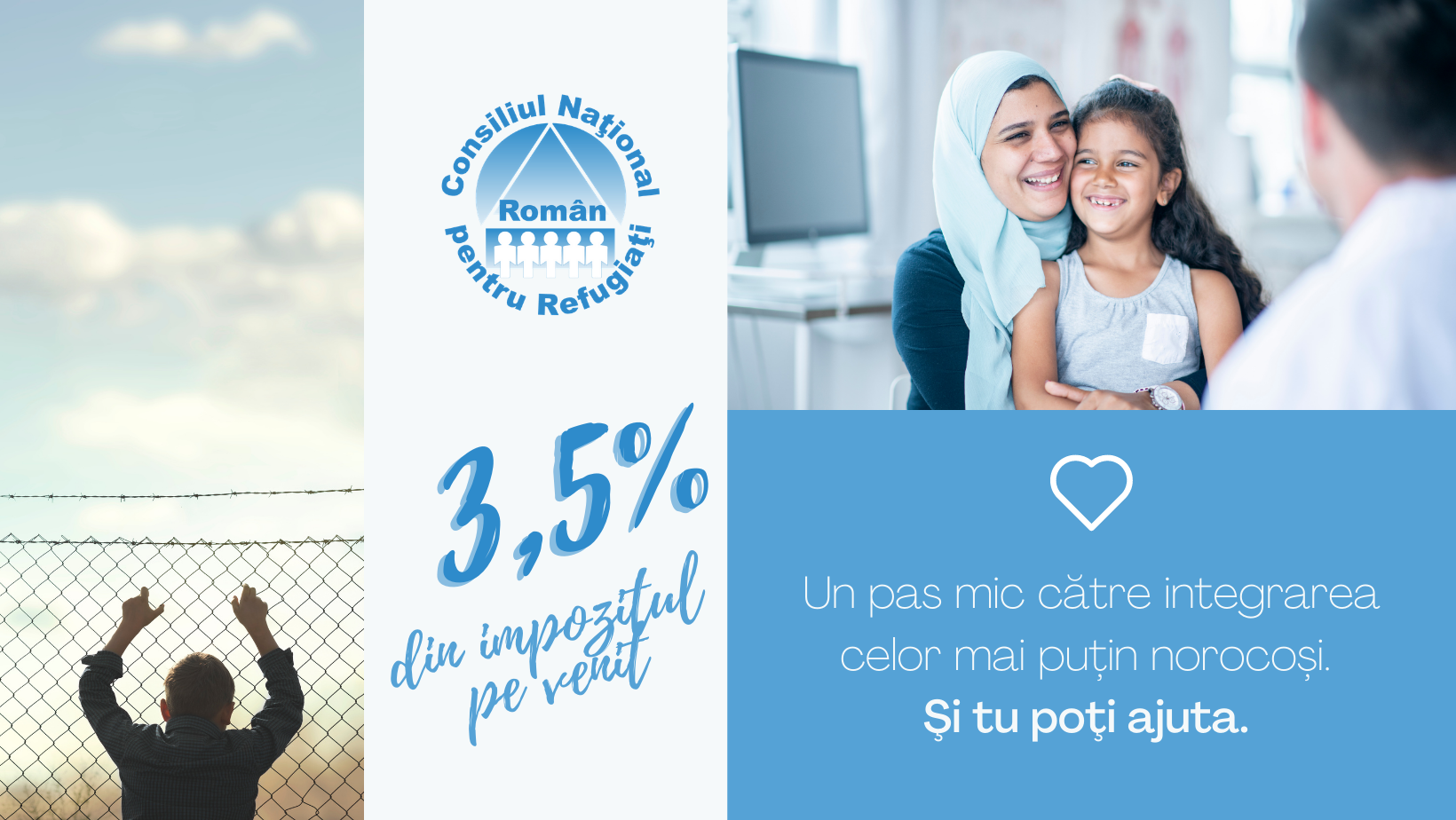 Fiecare refugiat are dreptul la o viață mai bună. Şi tu poţi ajuta. Donează 3,5 % din impozitul pe venit!