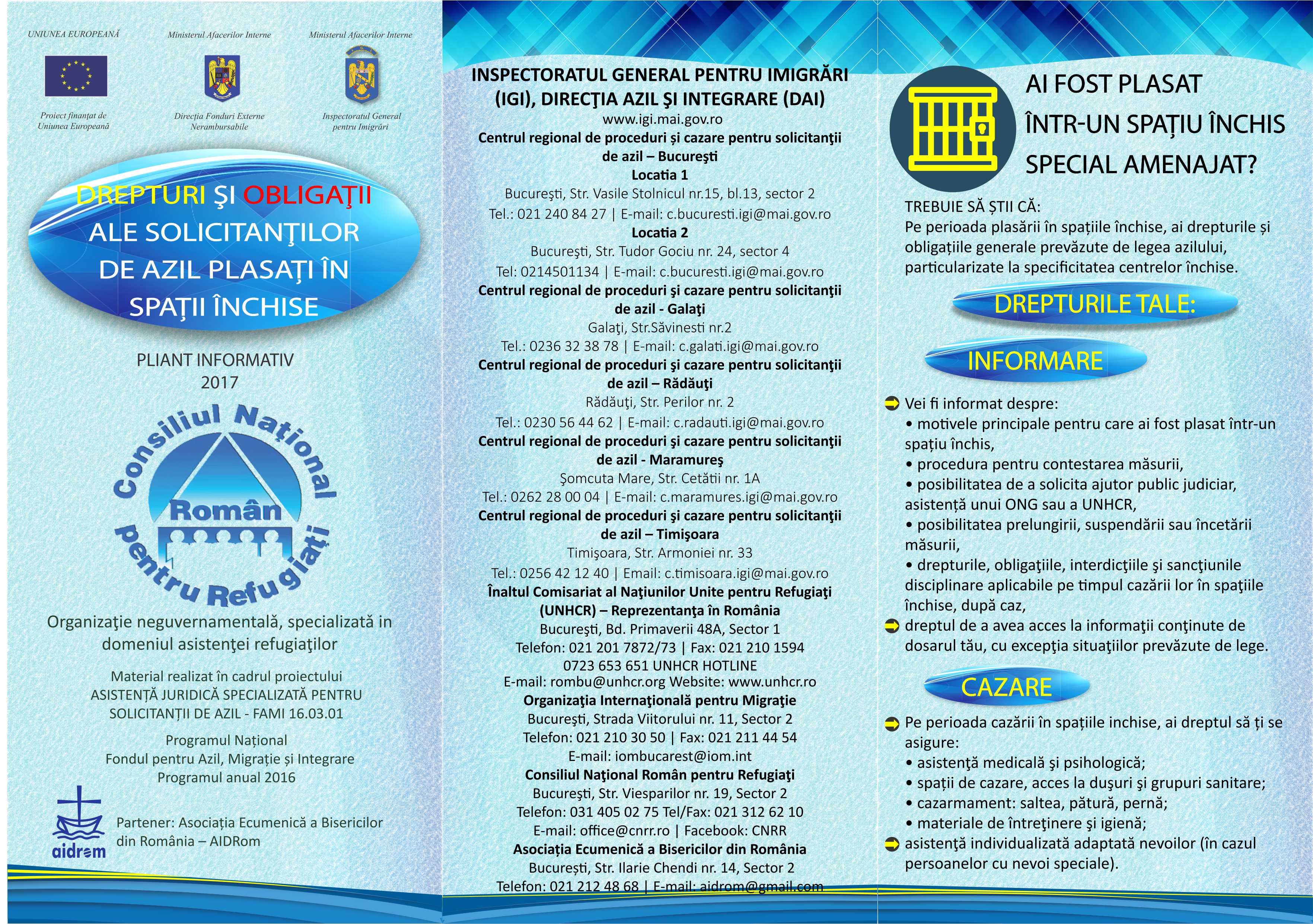 Drepturi si Obligatii ale Solicitantilor de Azil Plasati in Spatii Inchise