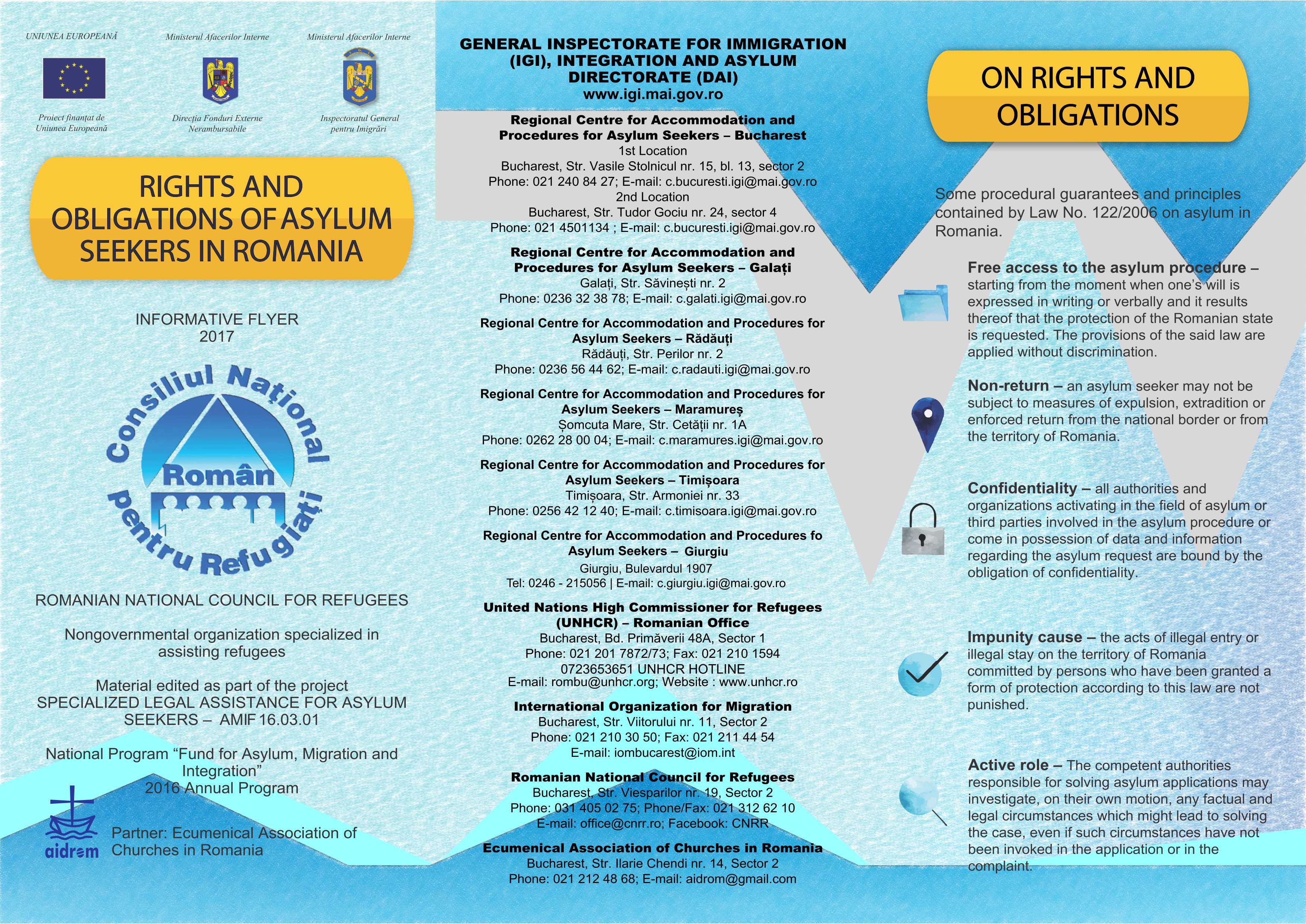 Drepturi si Obligatii ale Solicitantilor de Azil - EN